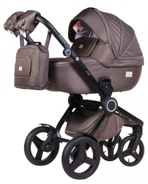 Комплектация коляски: люлька, прогулочный блок, сумка, дождевик, москитная сетка, рукавички и чехол для ножек
