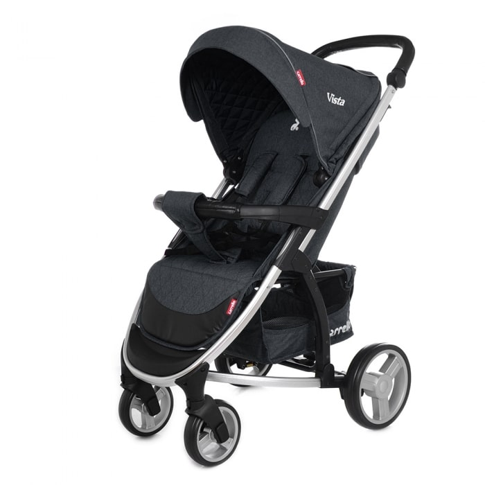 В качестве системы безопасности в ней используются пятиточечные ремни, для надежной фиксации ребенка, съёмный защитный бампер и педаль-тормоз на задние колеса. Есть в ней и достаточно большой регулируемый капюшон, и чехол на ножки, что позволит выходить с такой коляской на прогулку при любой температуре на улице. Не менее порадует и вместительность багажной корзины Carrello Vista, куда легко поместятся как вещи малыша, так и ваши покупки.