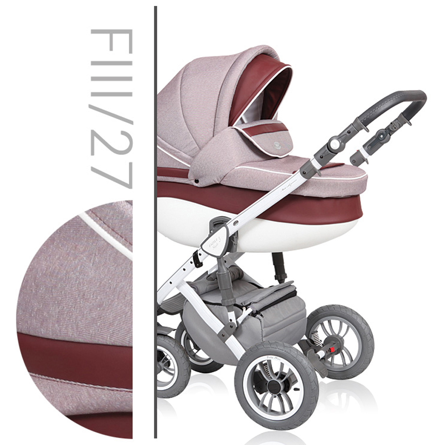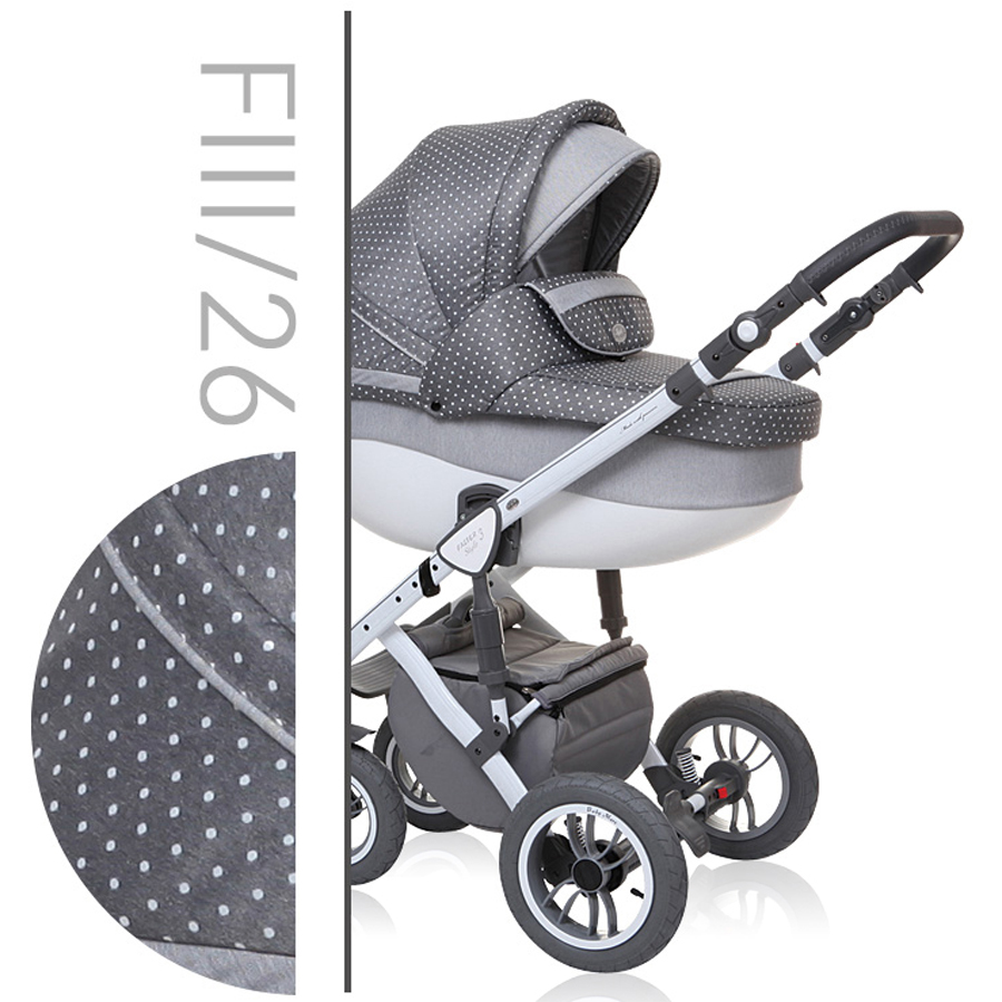 Уникальный дизайн коляски не останется незамеченным. Великолепное сочетание контрастных тканей обивки и приятная фактура с водоотталкивающим свойством позволит коляске все время эксплуатации сохранять достойный вид и оставаться стильной. Дополнительно для защиты от внешних факторов обивки коляски и ребенка в ней в комплекте предусмотрены аксессуары: дождевик, москитная сетка.