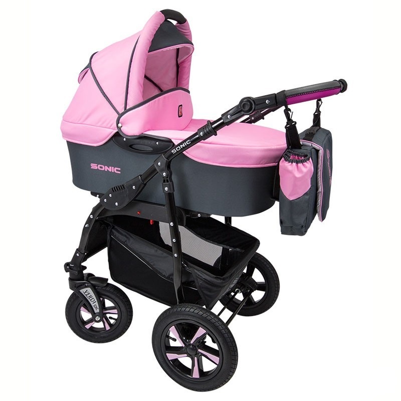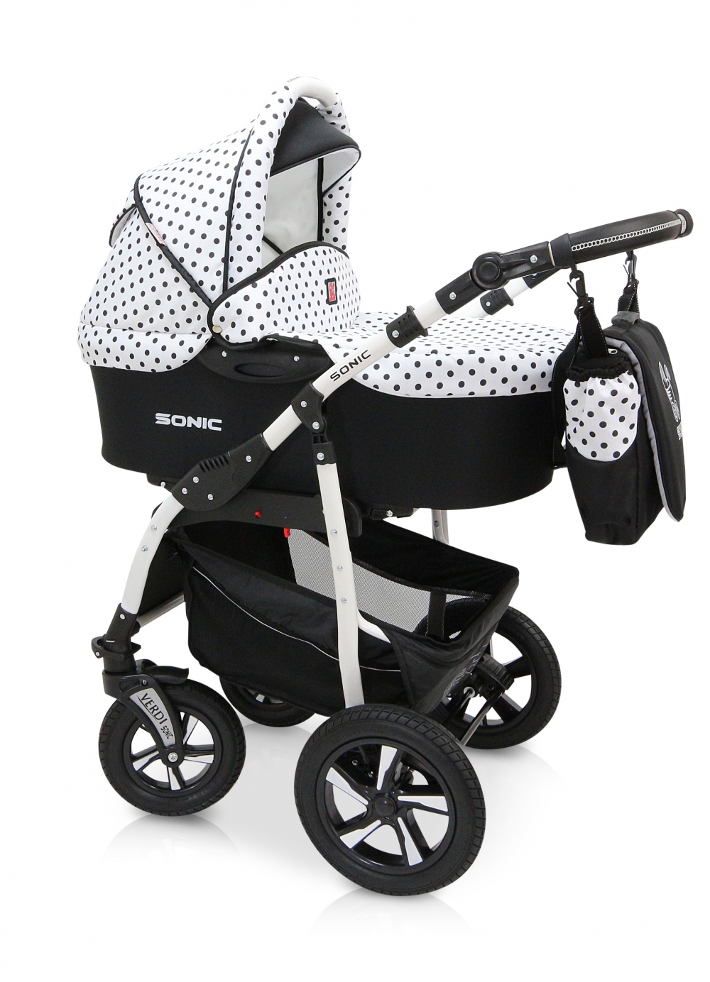 Коляска польского производителя Verdi серии Sonic сделана по Евро стандартам. Её ключевыми особенностями являются легкость, комфорт, маневренность (она проходит практически в любом узком помещении) и конечно же цена. Коляска Verdi Sonic имеет огромное количество расцветок. Ткань коляски водоотталкивающая, накидка легко снимается.