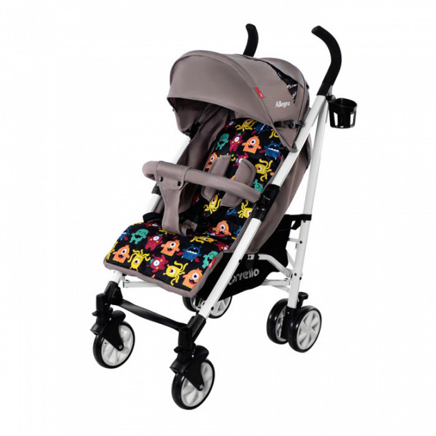 Данная модель легко складывается и раскладывается, при этом не занимает много места, что весьма удобно при поездках и хранении. Порадует и ее легкость хода в сочетании с отличной маневренностью. Установленные пятиточечные ремни гарантируют безопасность малыша, а возможность выбора угла наклона спинки в Carrello Allegro CRL-10101 позволит ребенку поспать во время прогулок.