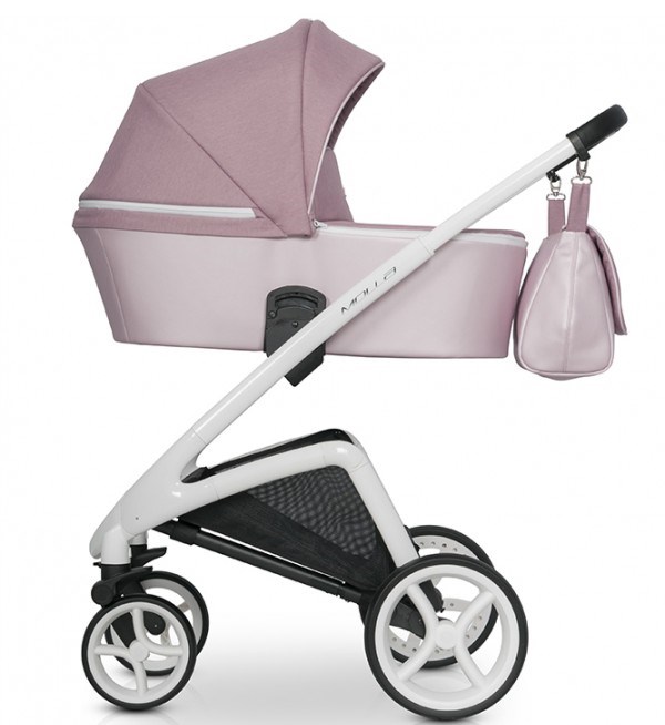 Новинка 2019 года - универсальная коляска с привлекательным дизайном в нежных тонах Riko Molla. Её преимуществом является облегченная люлька, что принесет дополнительный комфорт родителям в использовании; а также более узкое шасси, что даст возможность поместиться в узкую дверь или маленький лифт.