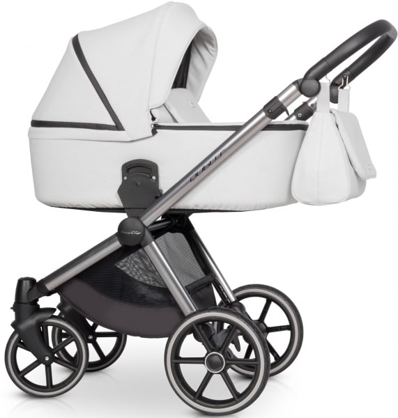 Современная алюминиевая рама с инновационной системой сборки покрыта специальным гальваническим покрытием титанового цвета. Для производства обивки использовались польские ткани высочайшего качества с тонкими структурными узорами жаккардового типа. И люлька, и прогулочный блок имеют простые геометрические формы, благодаря чему многофункциональная коляска Riko Qubus выглядит очень современно. Шасси имеет очень хорошую амортизацию как передних, так и задних колес. Современные колеса с полиуретановыми шинами не требуют обслуживания, чрезвычайно легкие и устойчивы к истиранию. Сиденье можно установить по ходу и против хода движения. Четырехступенчатая регулировка спинки с положением лежа и высота спинки выше среднего (50 см) делают прогулочную версию пригодной для длительного использования. Люлька большая и удобная. Имеет мягкую хлопчатобумажную подкладку из ткани с сертификатом Oeko-Tex Standard 100 и практичную регулировку высоты подголовника.